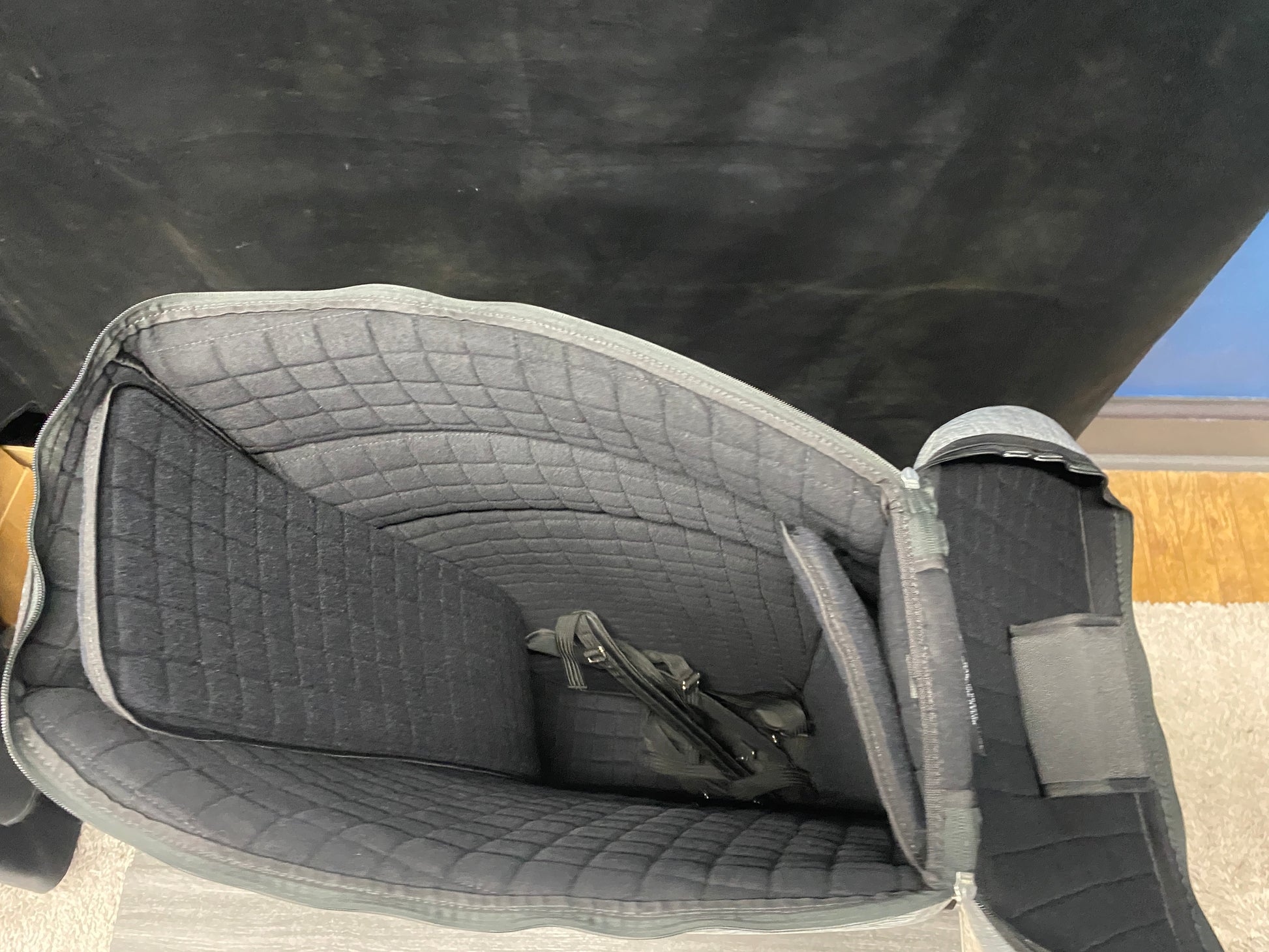 After a hiatus, Marcus Bonna has added a tuba bag back into their catalogue of cases. The bag is constructed using nylon for the body and leatherette for the bow. A fiberglass panel supports the back of the case, where the backpack straps attach. The bag was made for the dimensions of a Yamaha 641 or similar, with an approximate height of 40 inches, width of 20 inches, and bell diameter of 18 inches. The bag comes with backpack straps, mouthpiece pouch, and fixed music bag.