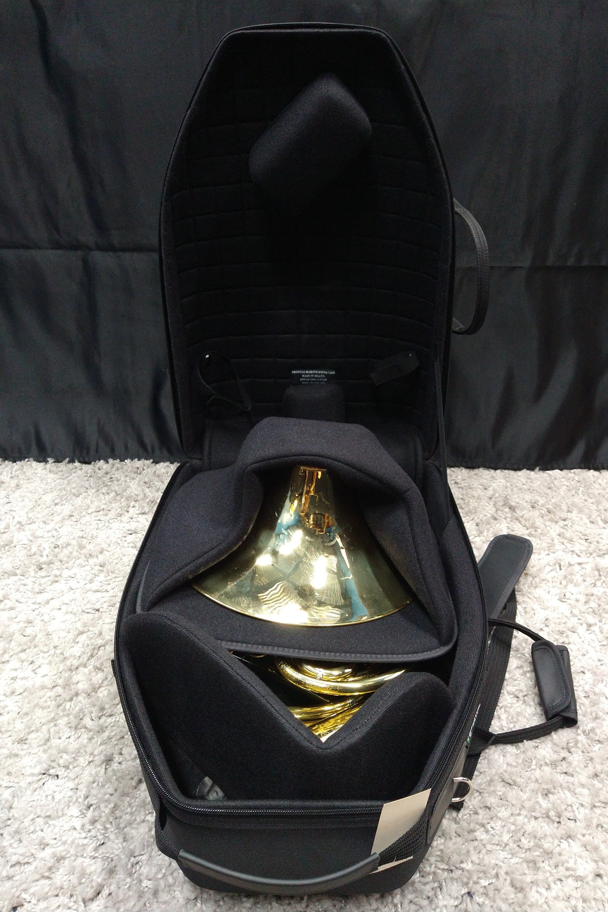 Perfect screw bell horn flight case by Marcus Bonna for carry-on luggage. High Compact case (22.5cm x 35cm x 51cm) for some sizes of french horn. Includes space for 2 mutes.