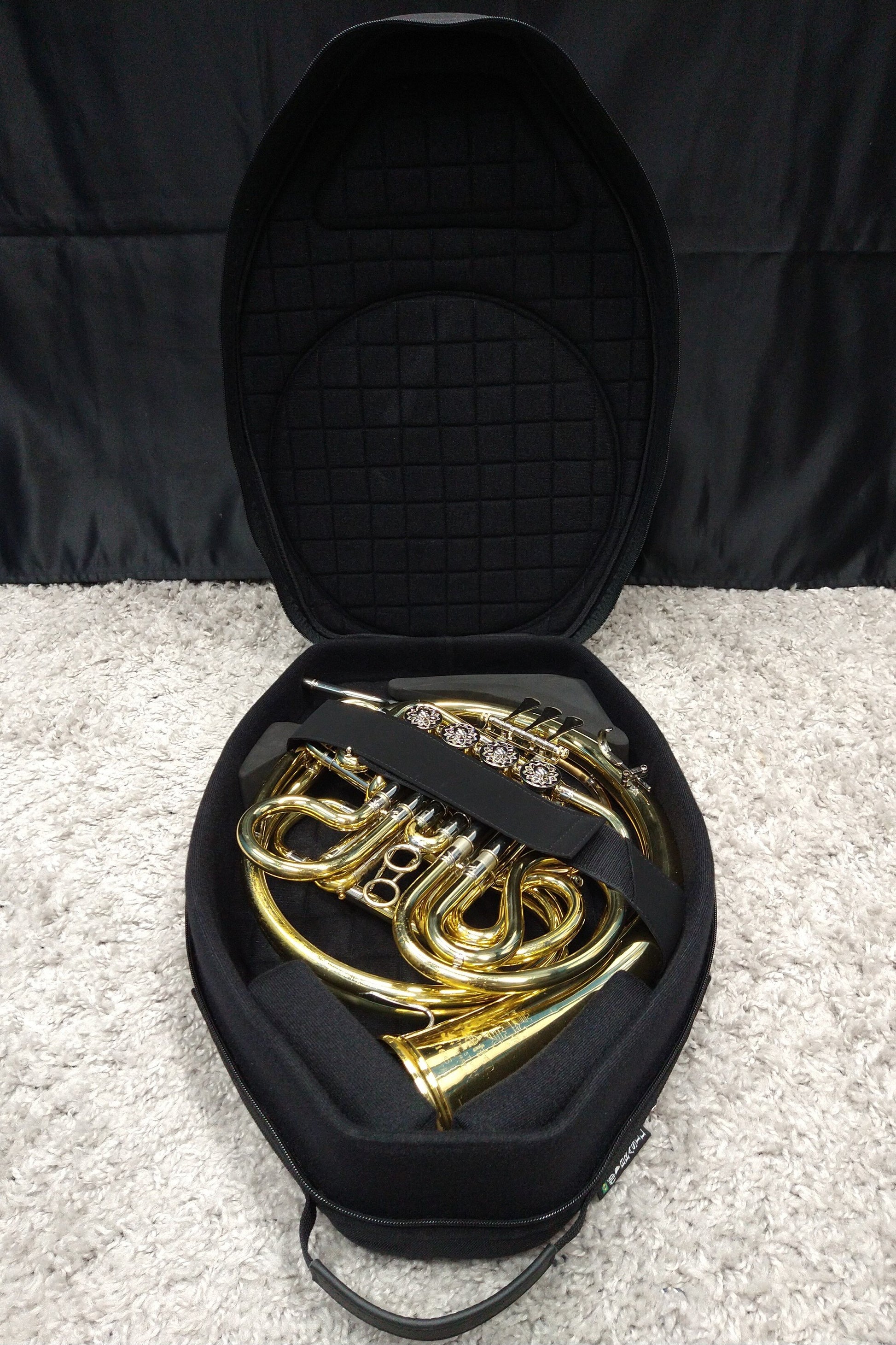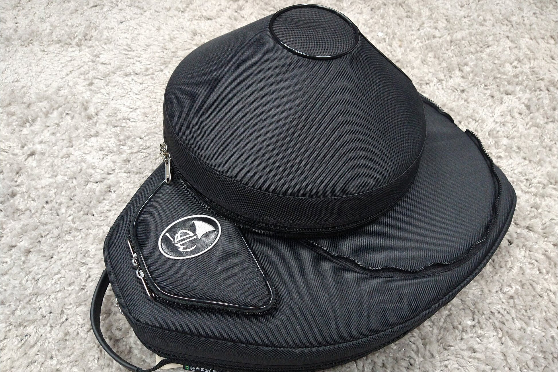 Marcus Bonna SD case for screw bell french horn with detachable bell flare compartment for when you need to fit everything in an extra tight spot on those puddle jumper flights. This case is part gig bag, part hard case with a hard fiberglass shell for the main body combined with a soft top lid. The detachable bell compartment however contains a hard fiberglass shell as well for extra protection should you have to stow the body and bell separately.