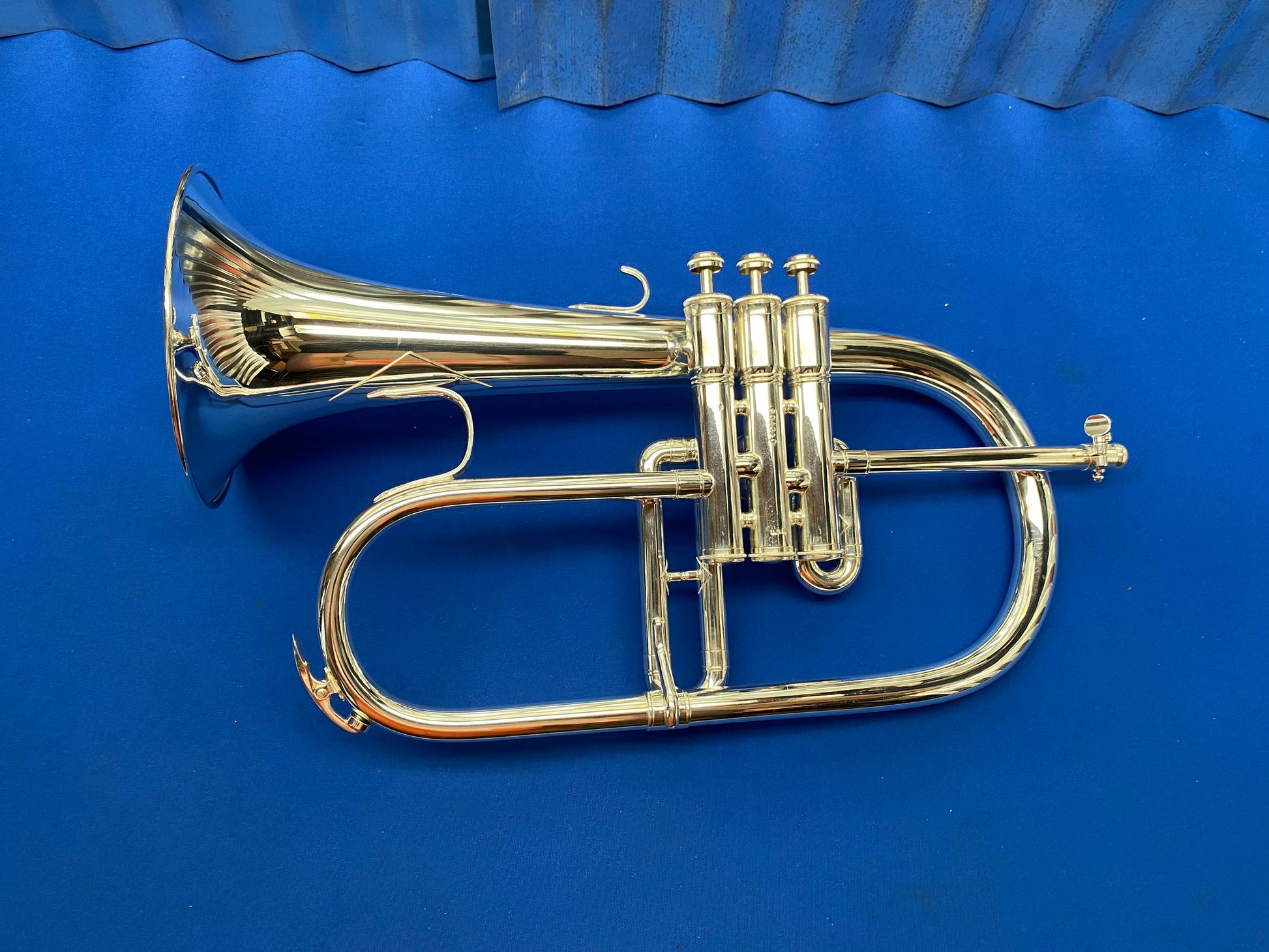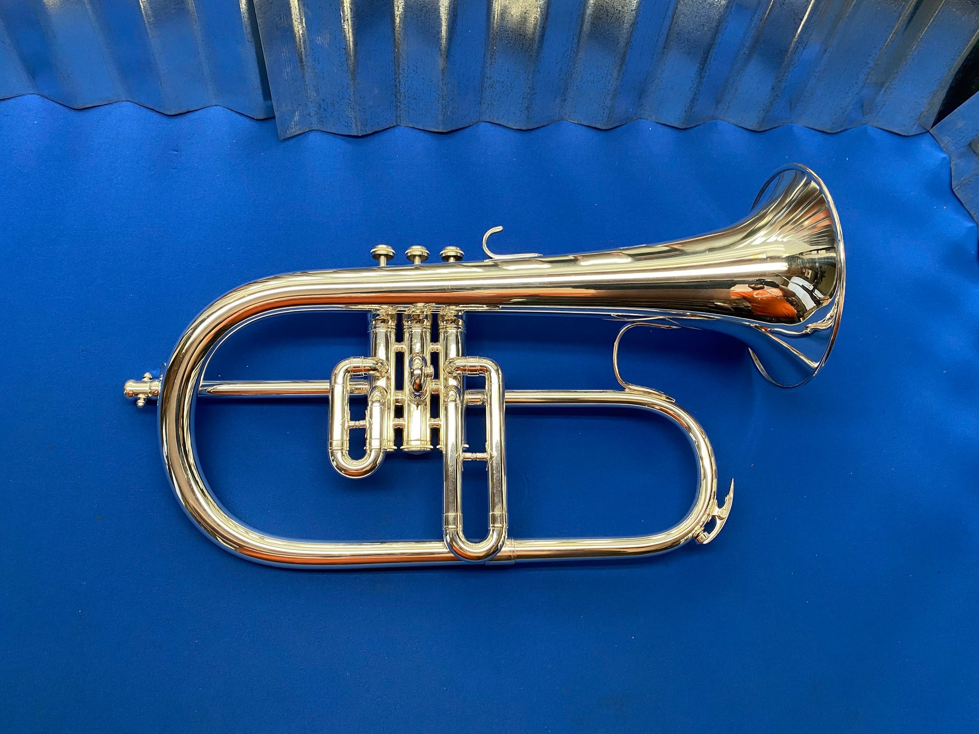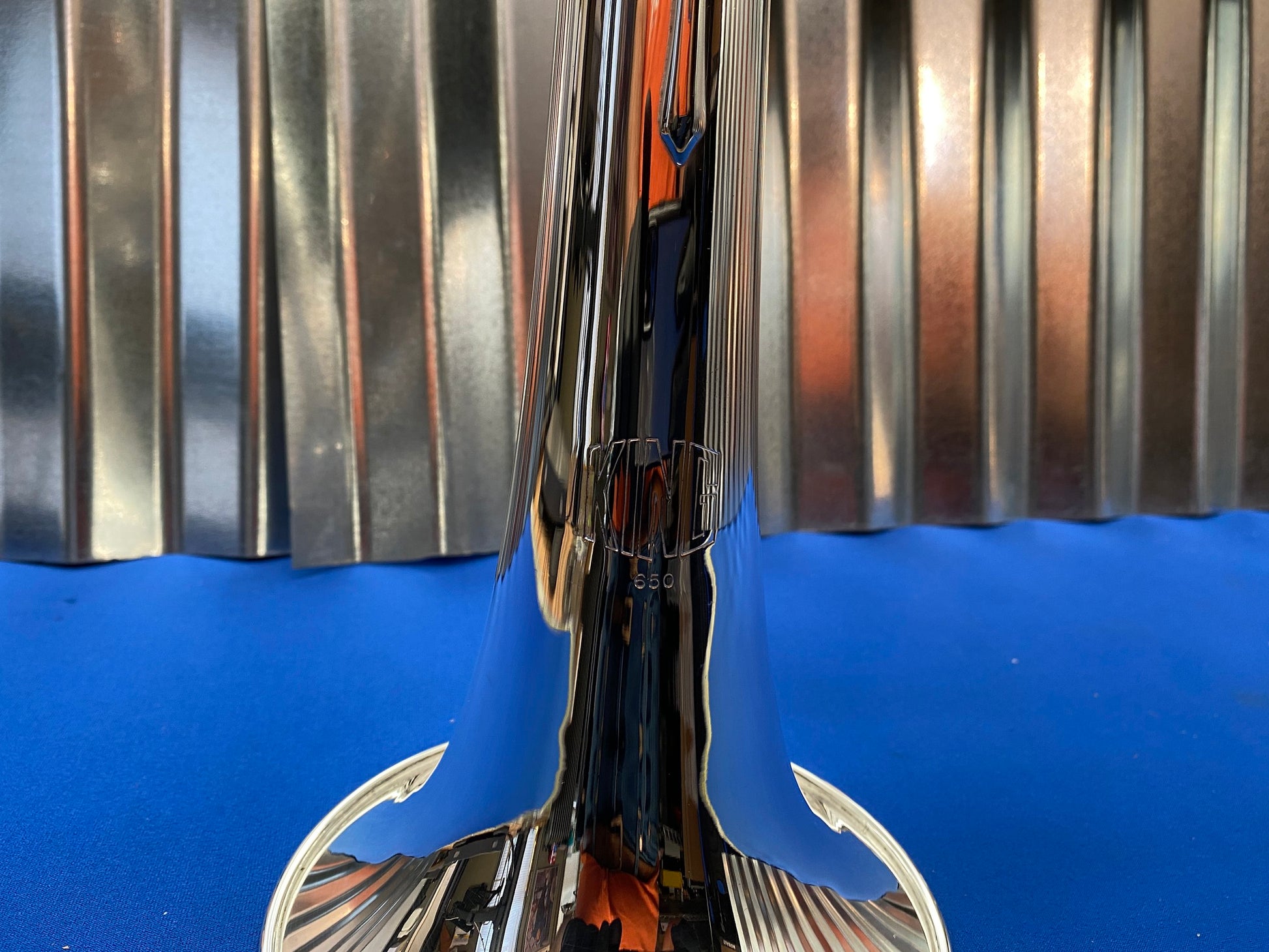 This is a King 650 Bb Flugelhorn. Aside from some wear spots on the first slide knuckle and second slide, the instrument is in excellent condition. Valves and slides move freely, and it was ultrasonically cleaned upon arrival to the shop
