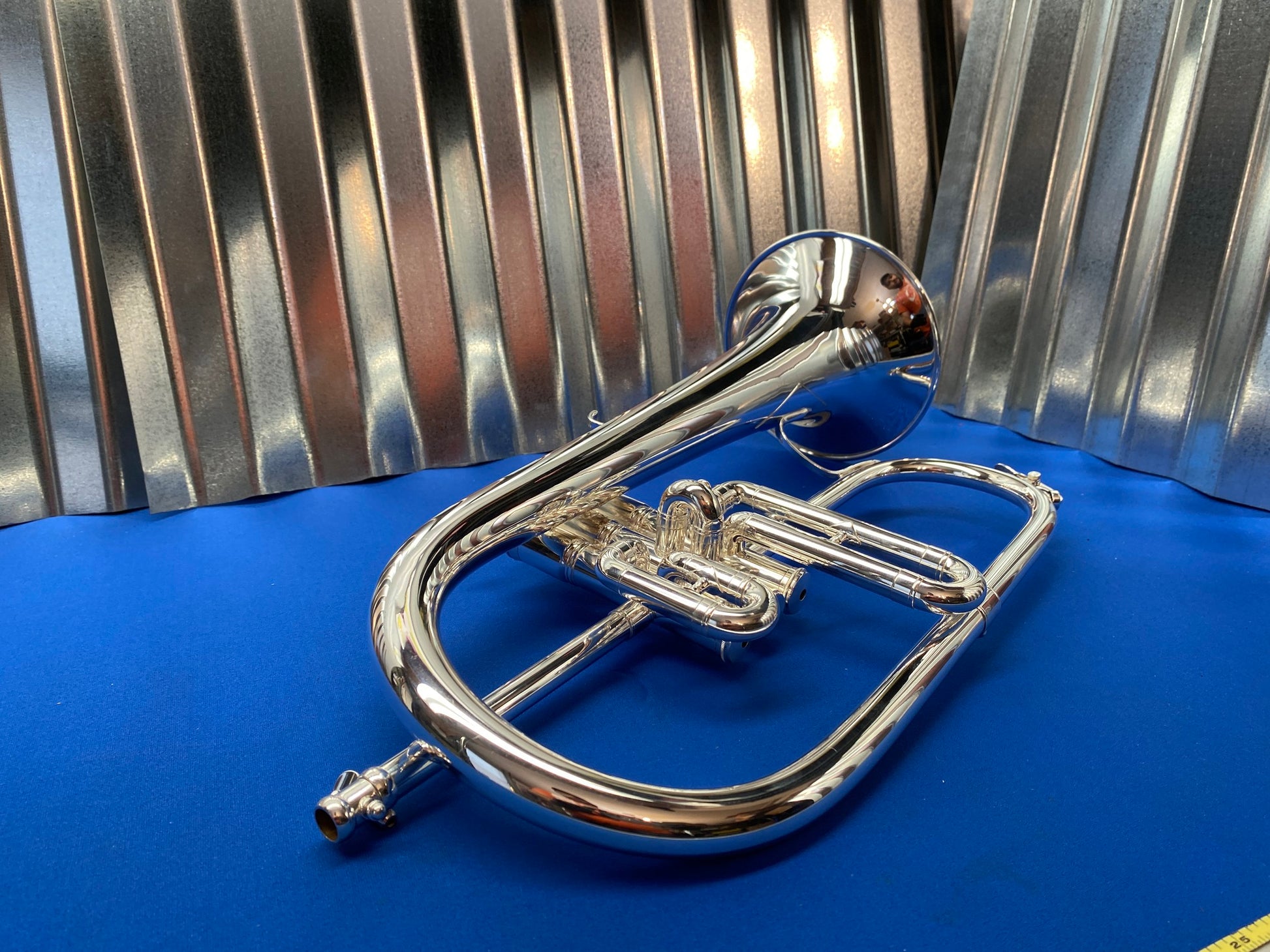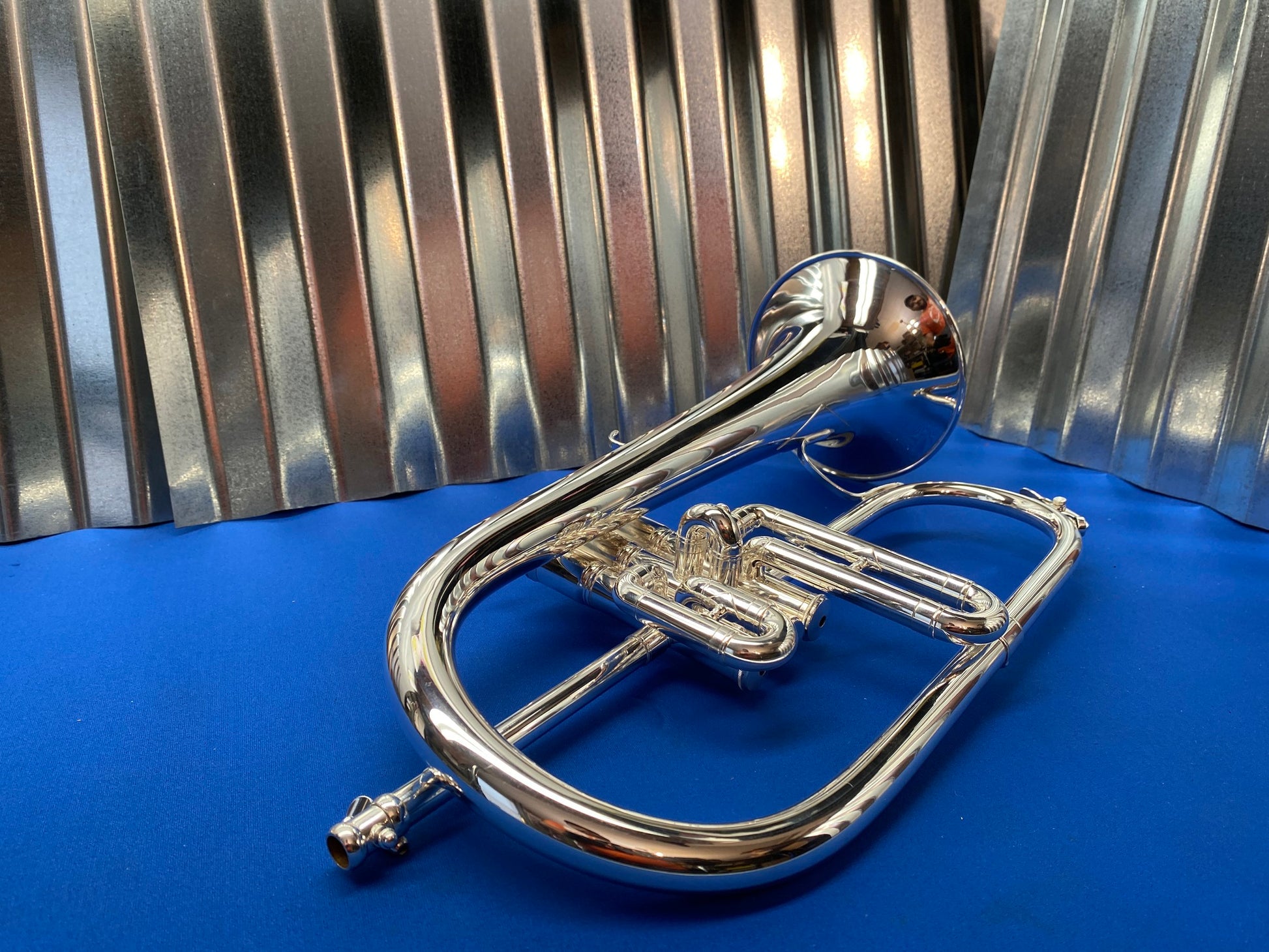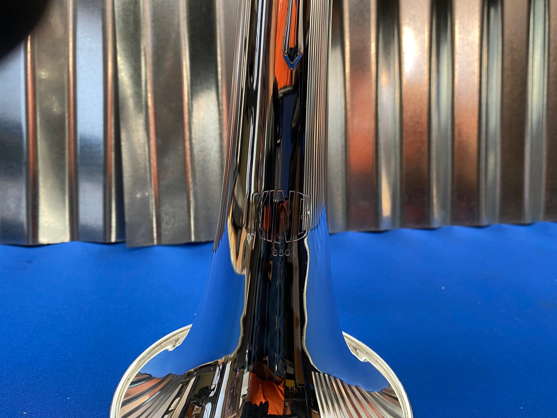 This is a King 650 Bb Flugelhorn. Aside from some wear spots on the first slide knuckle and second slide, the instrument is in excellent condition. Valves and slides move freely, and it was ultrasonically cleaned upon arrival to the shop