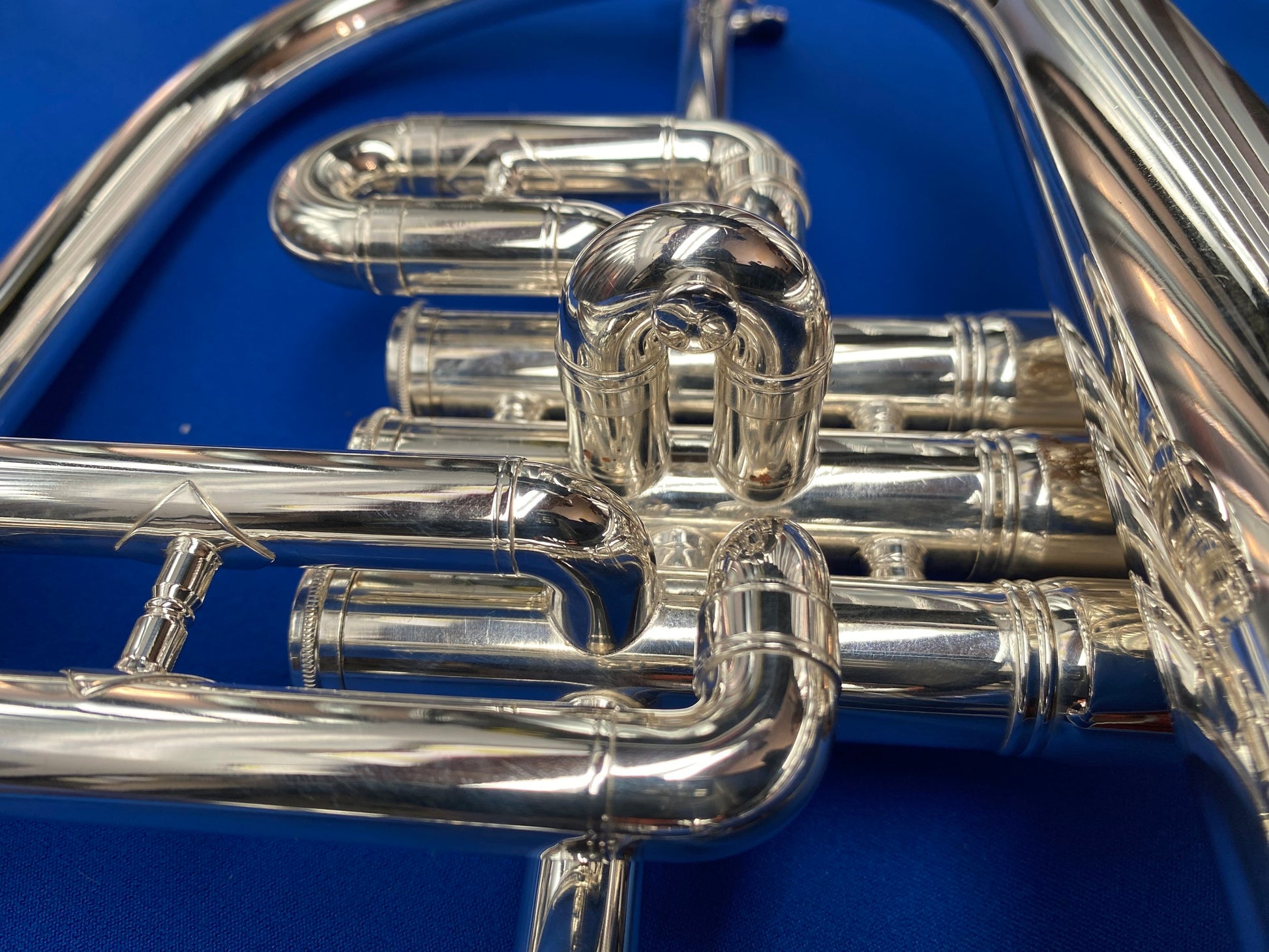 ***VINTAGE HORN DISCLAIMER*** While the valves and slides are fully functional and move freely, trumpets of this age commonly have excessive wear and sometimes unknown lineage and repair history that cannot be fully known to us. As such mechanical action can be finicky under a variety of conditions some of which may include choice of valve oil, valve hand position & previous repairs or valve overhauls.